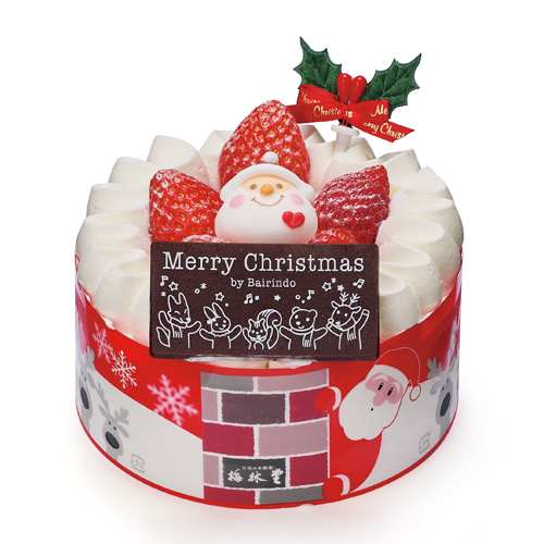 口あたり軽やかな梅林堂オリジナルブレンドの生クリームと甘酸っぱい苺のスライスを、ふわふわなスポンジでサンドしました。お子様からご年配の方までみんなが笑顔になる人気No.1のクリスマスケーキです。