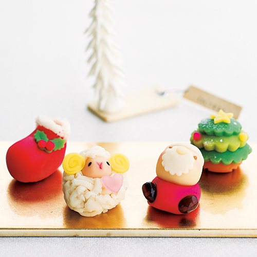 ブーツ、ひつじ、サンタ、ツリーをモチーフにした可愛らしい和菓子。